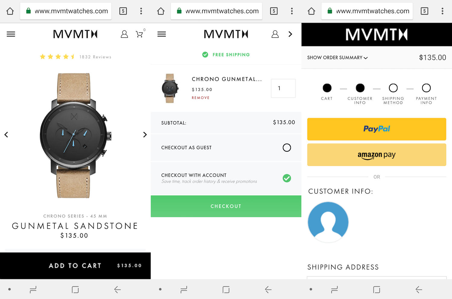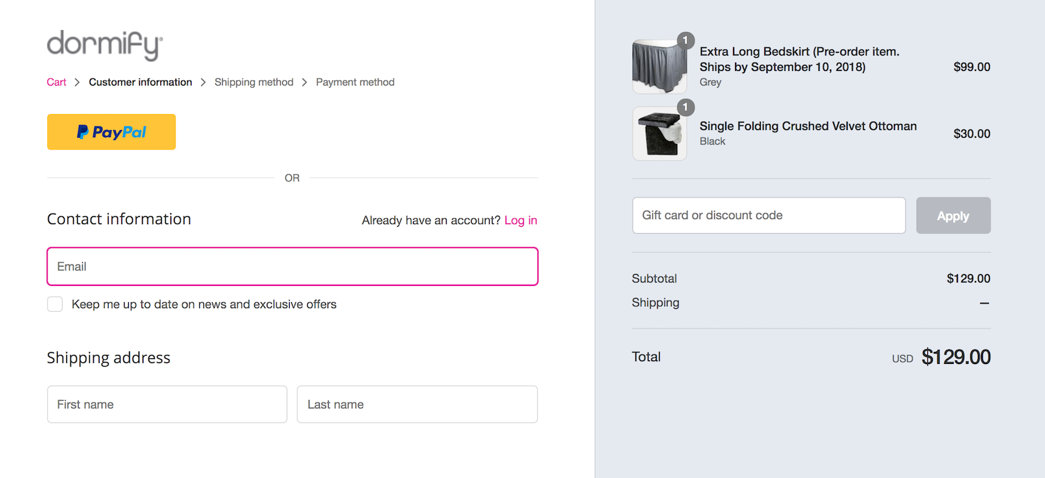 Если клиент нажимает кнопку «Оформить заказ» и попадает на страницу и URL-адрес, которые не соответствуют предыдущему, это может быть очень тревожным. Вот почему гляделки настроил HTML-код на платформе Shopify Plus, чтобы предложить визуально непротиворечивый интерфейс для создания доверия с потребителем посредством дизайна и URL-адреса.
